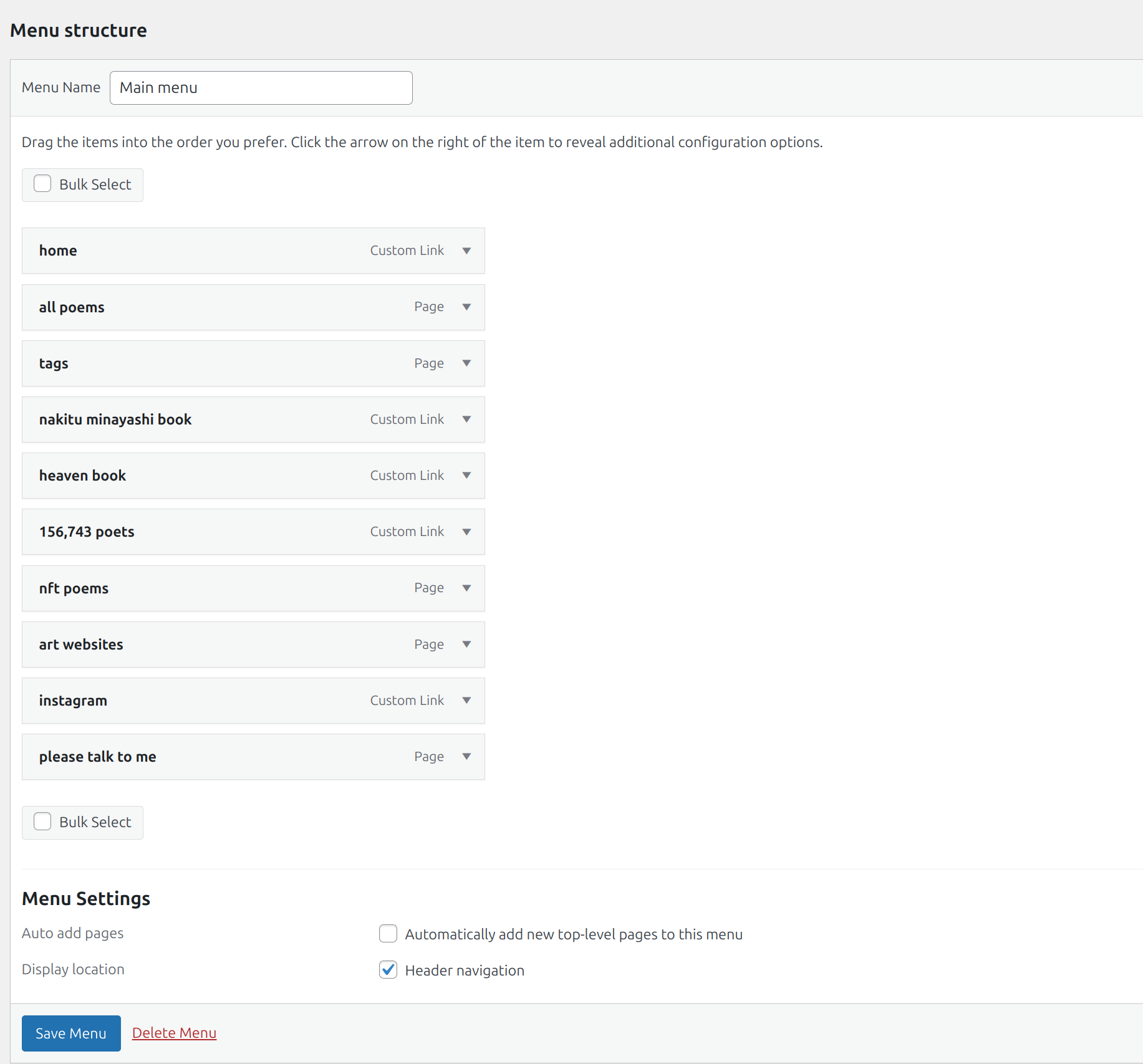 – once logged in go to Appearance -> Menus